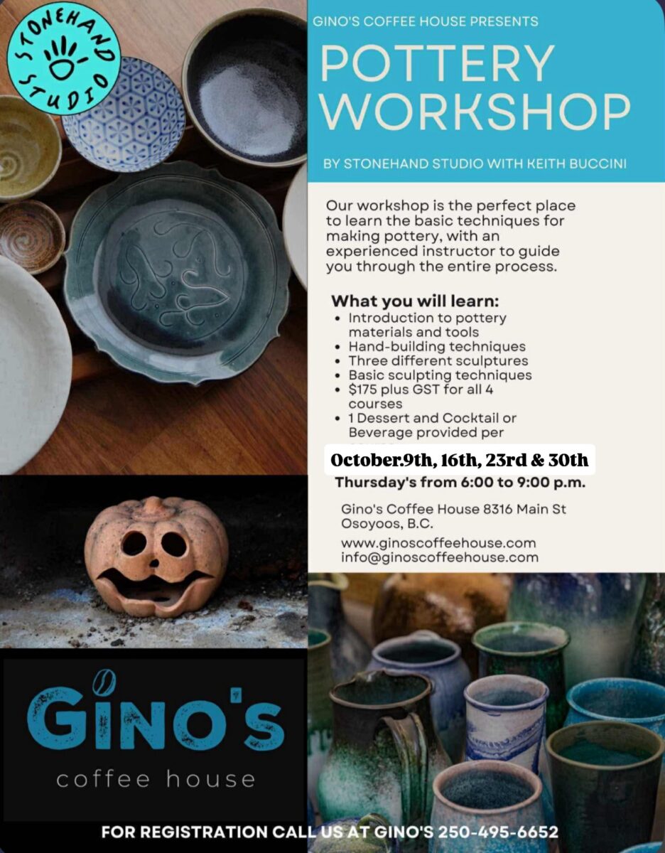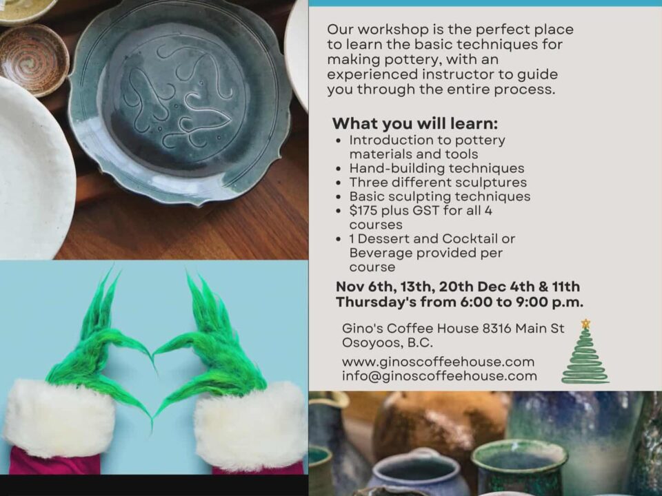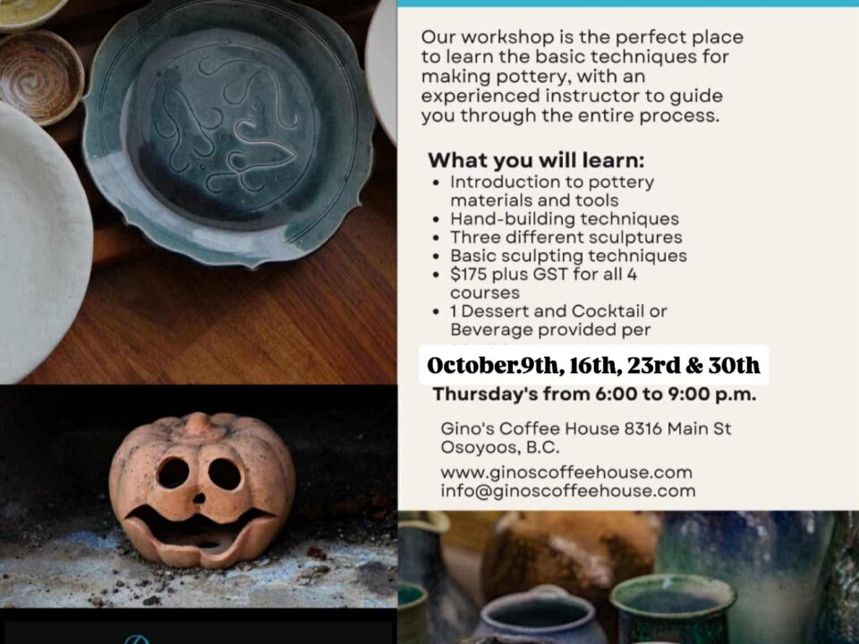 Pottery Classes at Gino’s Coffee House in November. “Unleash Your Creativity at Gino’s Pottery Workshop #3!” Learn the fundamentals of pottery making in a fun and […]